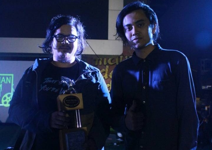 Mirda (sineas) dan Vikry (presedir Ruang Film Bandung) dalam sesi penyerahan piala. (dokumentasi panitia)