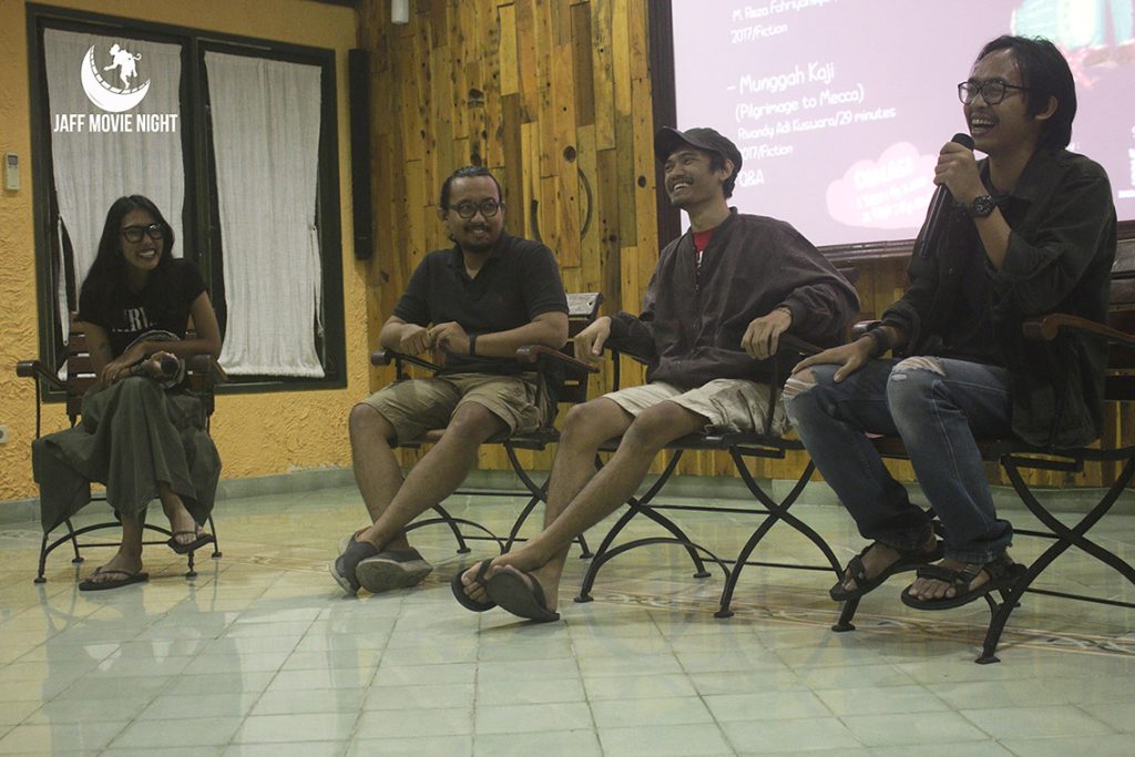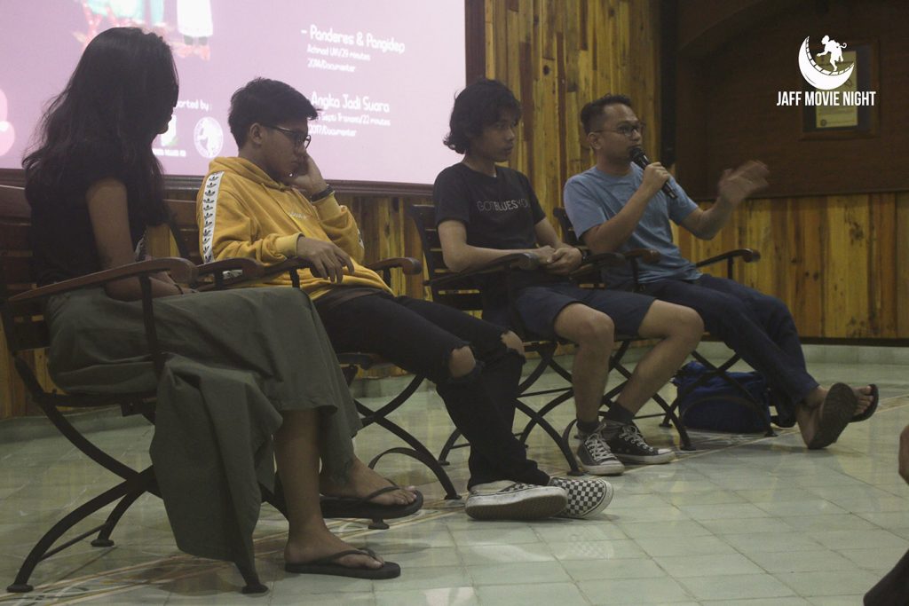 Bicky Reza, Abiyoga Bimo Nugroho, dan Amerta Kusuma pada sesi diskusi setelah pemutaran slot kedua JAFF Movie Night 2.4