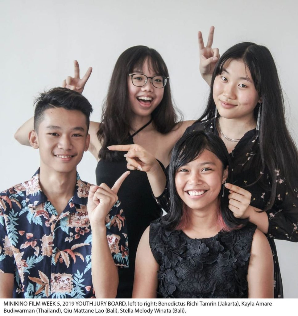 Nama empat peserta Youth Jury Camp tahun ini adalah Qiu Mattane Lao kelas 9 (Bali), Benedictus Richi Tamrin  kelas 3 SMP (Jakarta), Kayla Amare Budiwarman kelas 11 (Thailand), dan Stella Melody Winata kelas 10 (Bali). Mewakilkan ketiga rekannya, Stella menyatakan dalam bahasa Inggris, “My love for the arts, film, creating, and learning opportunities. That’s what brought me to the Minikino Youth Jury Camp 2019. I didn’t know what to expect but after 40+ films, it’s safe to say that this experience has cultivated my capacity to analyse films, in a both critical and appreciative perspective.”. Yang bila diterjemahkan kurang lebih,”Kecintaan saya pada seni, film, penciptaan karya dan kesempatan belajar. Inilah yang mengantar saya ke Minikino Youth Jury Camp 2019. Saya tidak tahu apa yang akan terjadi, tetapi setelah menonton lebih dari 40 film, rasanya saya bisa memastikan bahwa pengalaman ini mengembangkan kemampuan saya untuk menganalisis film, melalui perspektif kritis dan apresiatif. ” Biografi pendek susunan dewan juri dan dewan juri remaja 2019 dapat dilihat selengkapnya di tautan https://minikino.org/filmweek/jury-board-2019/