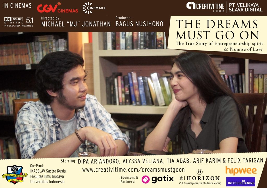 Persepsi sebagian masyarakat yang memandang karier para pengusaha muda ini mudah melonjak karena terlahir di kalangan privileged, yang sebenarnya salah besar. Hal itu yang membuat Michael “MJ” Jonathan, Sutradara film ini bersama para alumni sebuah sekolah bisnis di BSD, Tangerang, seperti Arif Karim (Promo & Screening Manager sekaligus pemeran pendukung film ini) resah dan ingin menceritakan kepada dunia bahwa ada jerih payah, ratusan penolakan, hingga air mata di balik kesuksesan mereka di usia yang sangat muda. Film The Dreams Must Go on memiliki tema besar “The Story of Entrepreneurship Spirit & Promise of Love” dan digarap berdasarkan kisah nyata. “Kami ingin menginspirasi para generasi millennials terutama gen Z untuk menjadi pengusaha muda dan mengajarkan bahwa mimpi adalah senjata ampuh dalam menghadapi penolakan/kegagalan” ujar sang sutradara Michael “MJ” Jonathan. Hingga hari ini, di kalangan mahasiswa sekitar Tangerang dan Depok serta komunitas pegiat kewirausahaan se-Indonesia, Film ini mendapat perhatian yang sangat positif. “Kisah kepahlawanan mereka yang berhasil menyelamatkan ekonomi-sosial Indonesia di usia yang sangat muda menjadi daya tarik untuk menonton film ini” ujar Bagus Nusihono sebagai produser. Bioskop CGV Cinemas bersama Infoscreening telah memasukkan film ini untuk program penanyangan reguler pada Desember 2019 nanti dalam tajuk Kreasi Movie Corner.